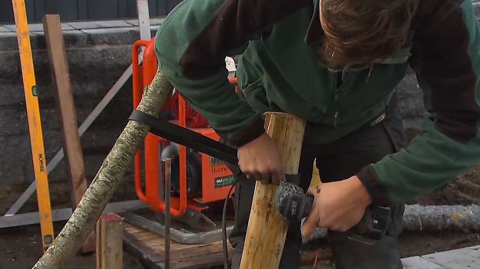 Hetzelfde doet hij nu voor de andere stammen, zodat het laatste stuk terras nog kan afgewerkt worden.
